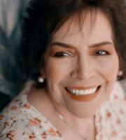 A family of five stands together posing for a photo with a rocky coastal background. The family consists of two adults and three children dressed in formal attire, standing on a cliff with waves crashing against the rocks behind them.